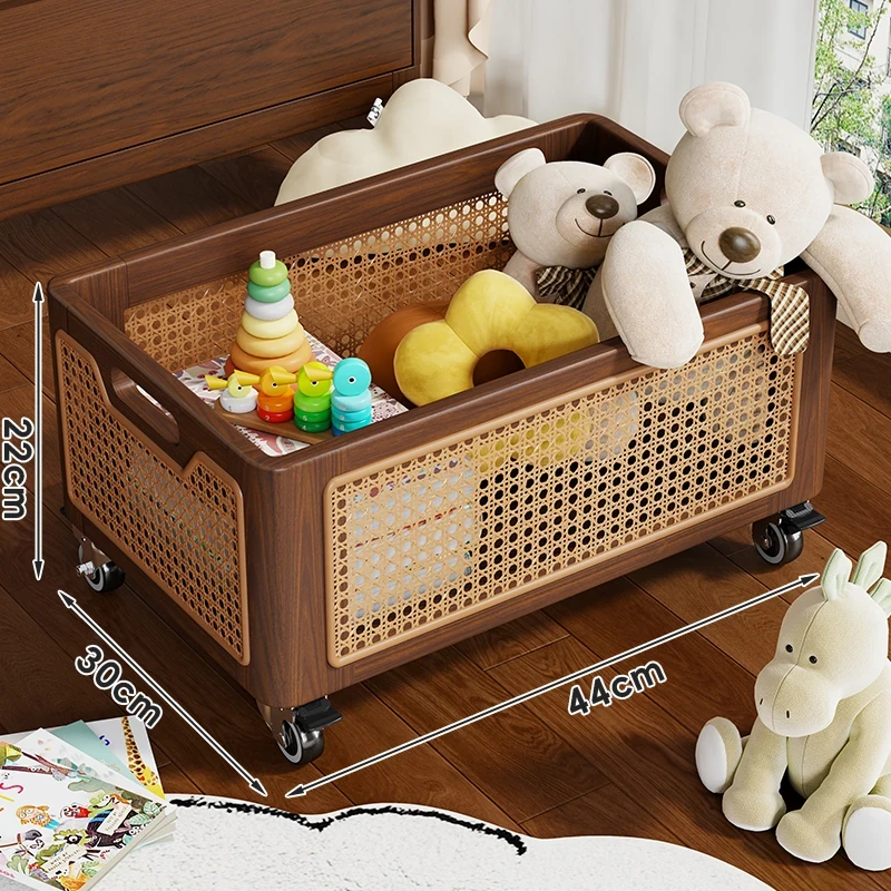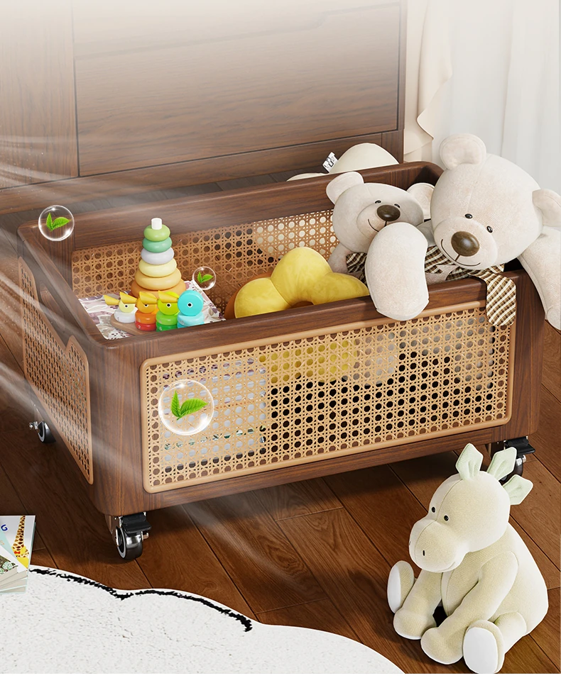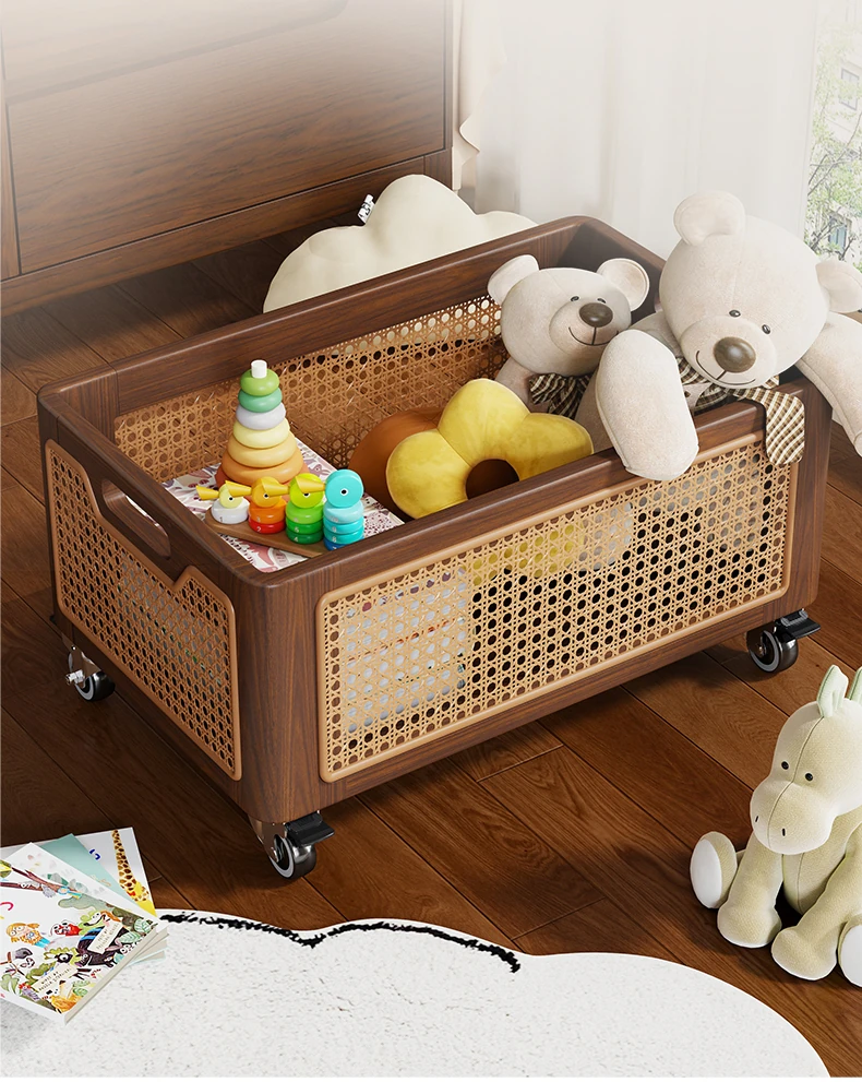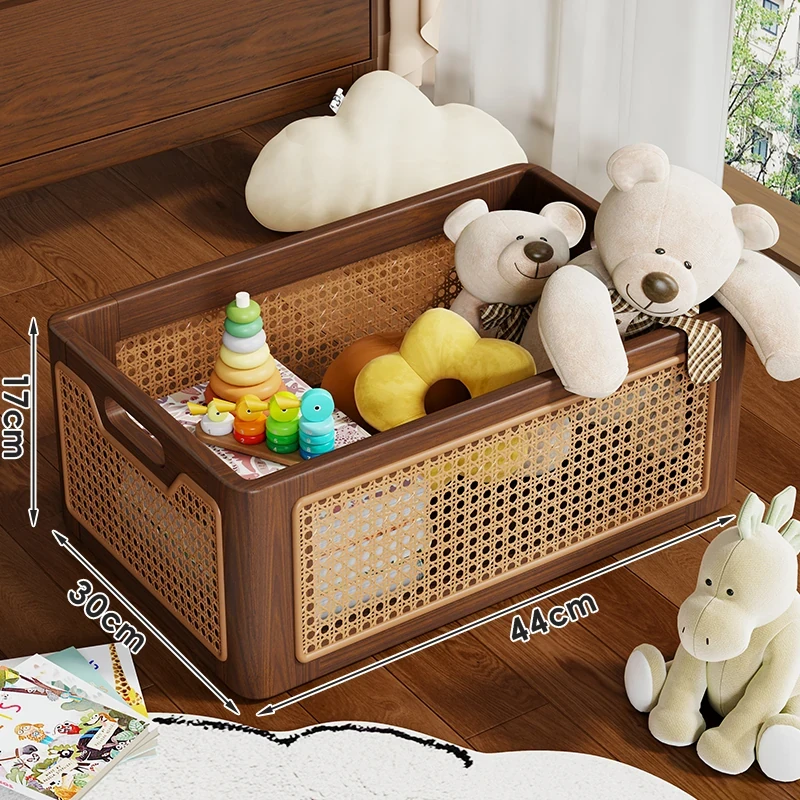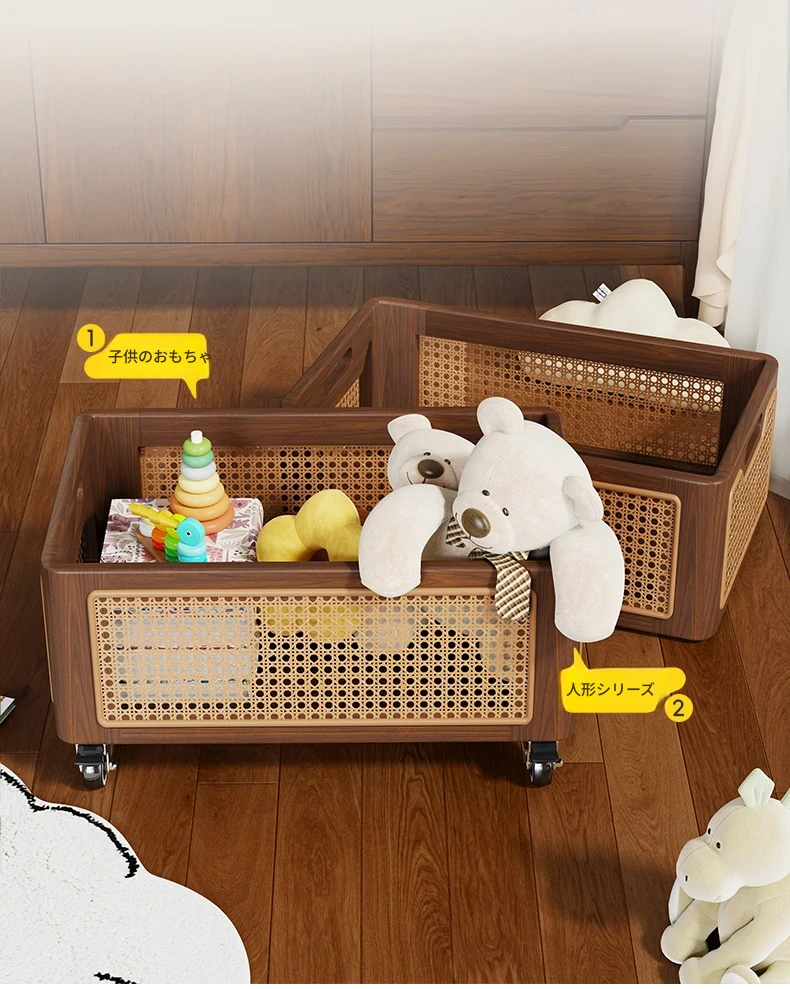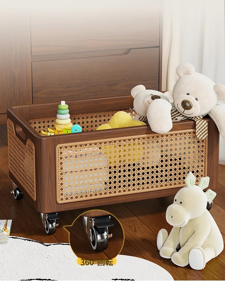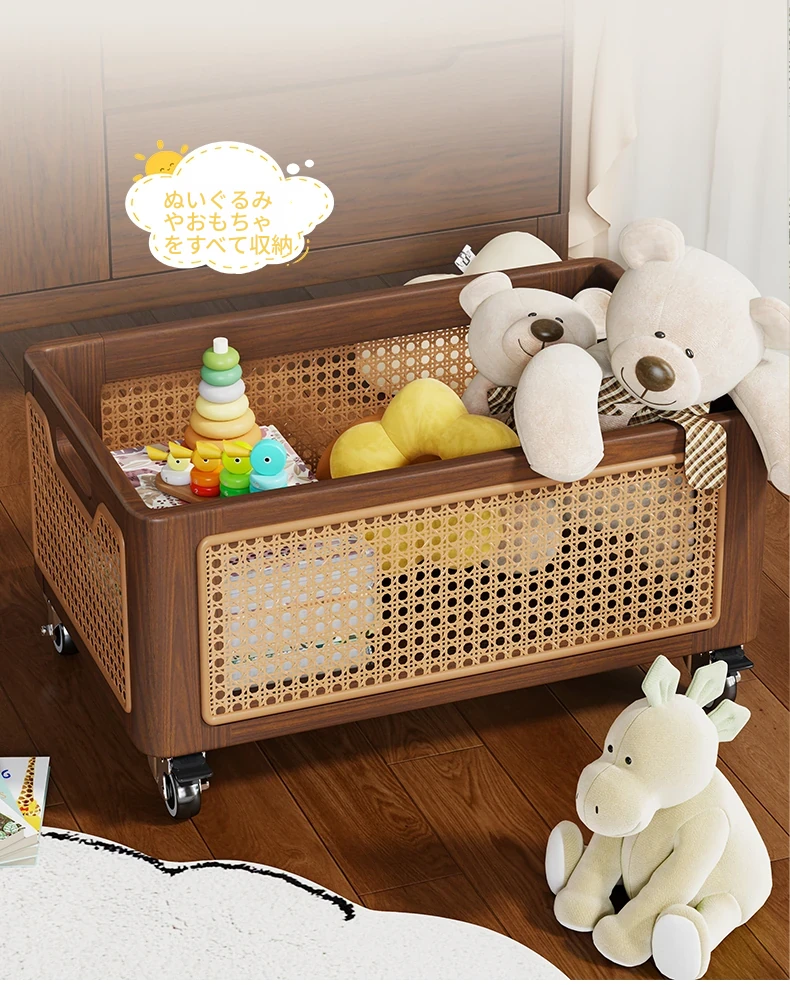 天然木製のおもちゃ収納ボックス|家庭用ラタン編み|子供向け大容量おもちゃ整理箱|赤ちゃんのスナック・ぬいぐるみ収納にも最適!おしゃれで機能的な収納アイテム!