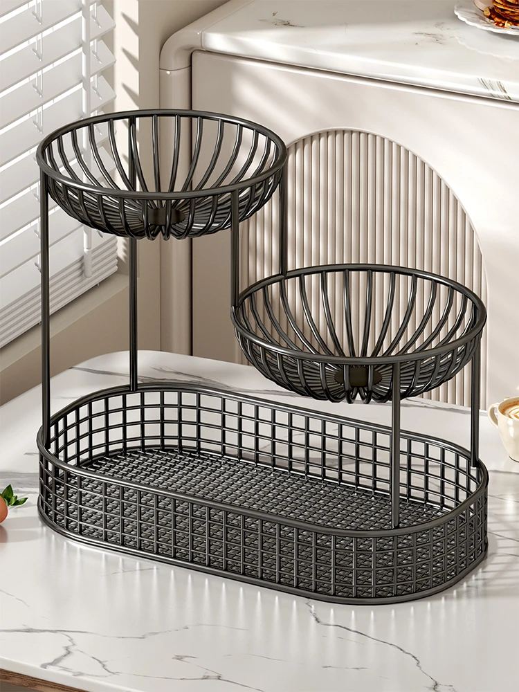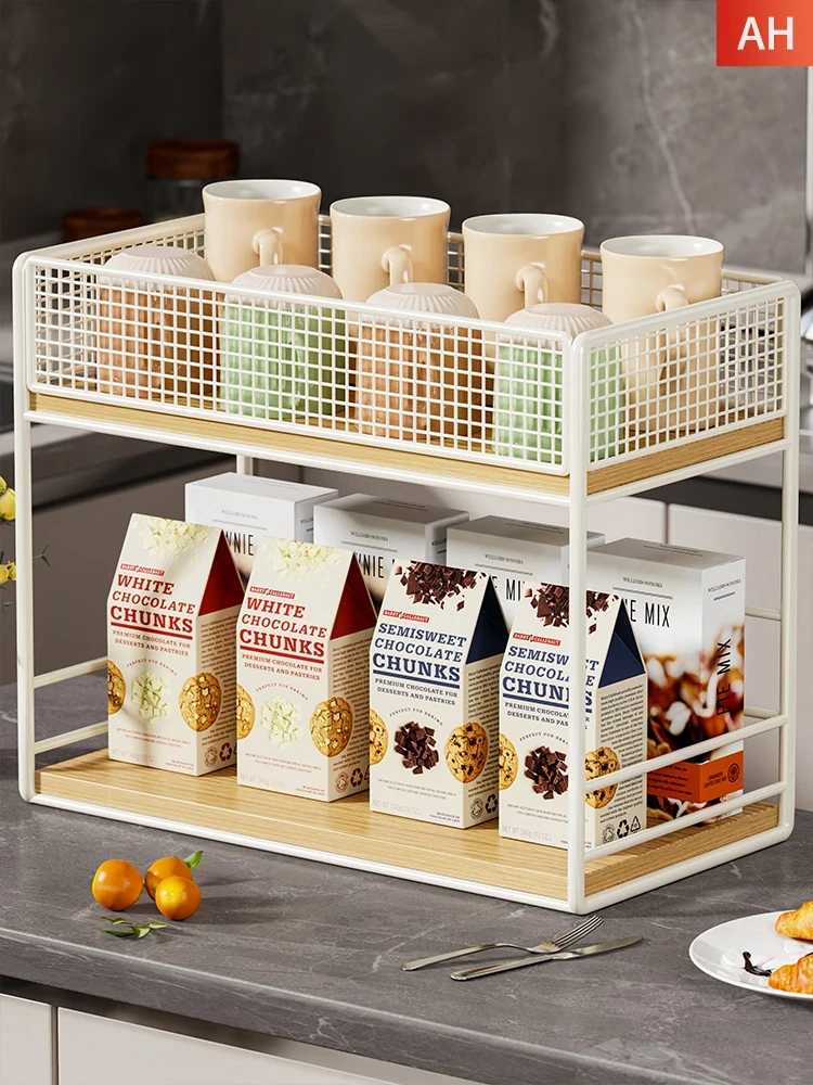 家庭用テーブル収納ラック|水杯やティーカップをおしゃれにディスプレイ!ダブルレイヤーのスナック収納バスケットで、食卓をスッキリ整頓!おしゃれで便利なデザインで、毎日の食事をもっと楽しく!