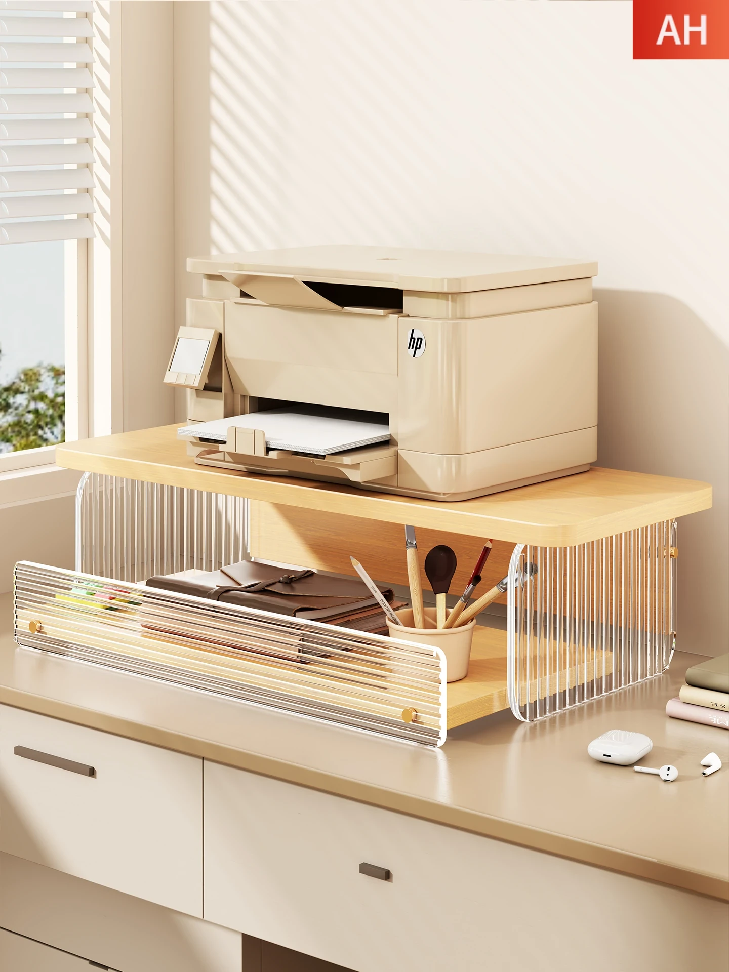 デスクトップ用二段式プリンターラック - コンパクトなコピー機を効率的に収納!オフィスでの作業スペースを広げる収納力抜群のスタンド。