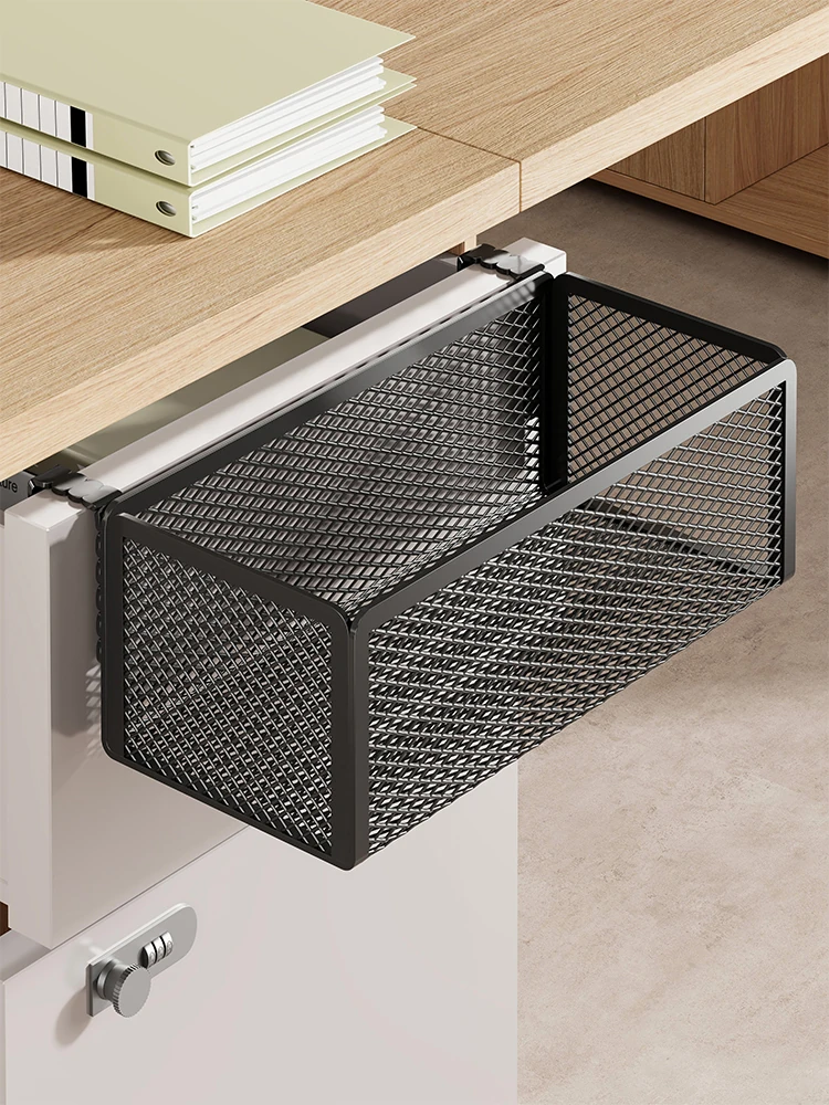 デスクサイドハンギングバスケット - オフィスや寮での整理整頓に最適!便利な収納ラックで、デスク上の小物をスッキリ解決。仕事の効率をアップさせる整理整頓の必需品!