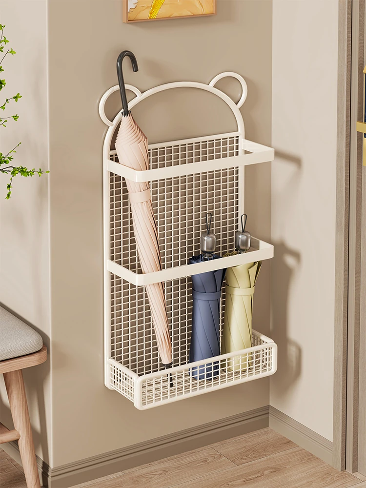 ドア後ろ壁掛け水切り傘スタンド!穴を開けずに取り付け可能なアイアン製パンダデザインの雨傘収納ラック。家の玄関に最適な傘置きで、スッキリとした空間を実現します!