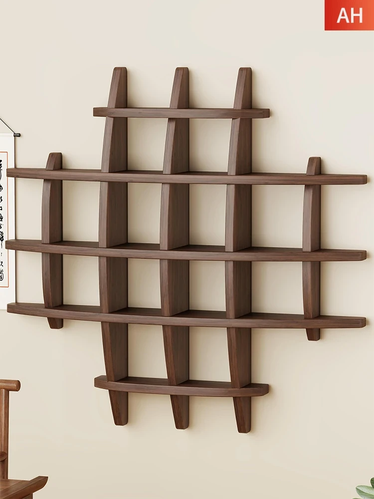実木製中華風レトロ茶器収納ラック - 茶葉を美しく展示するための壁掛け茶具ディスプレイシェルフ。高品質な素材で作られ、あなたの茶の時間をより特別に演出します。