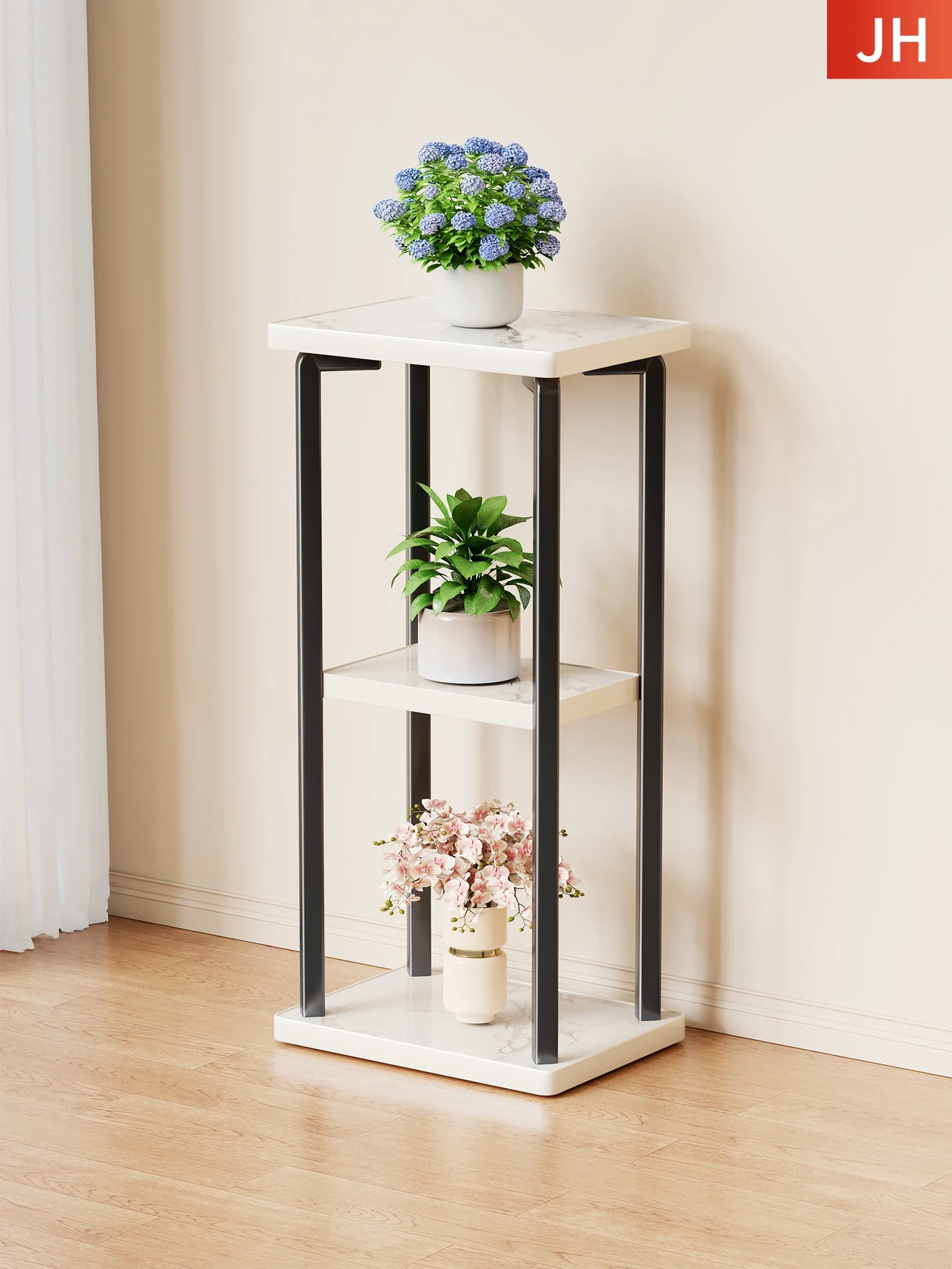 多層式のアイアン製プランターラック - リビングやバルコニーに最適!おしゃれで耐久性抜群の花架け、室内外どちらでも使える便利なデザイン。お花を美しく演出し、空間を華やかに彩ります!