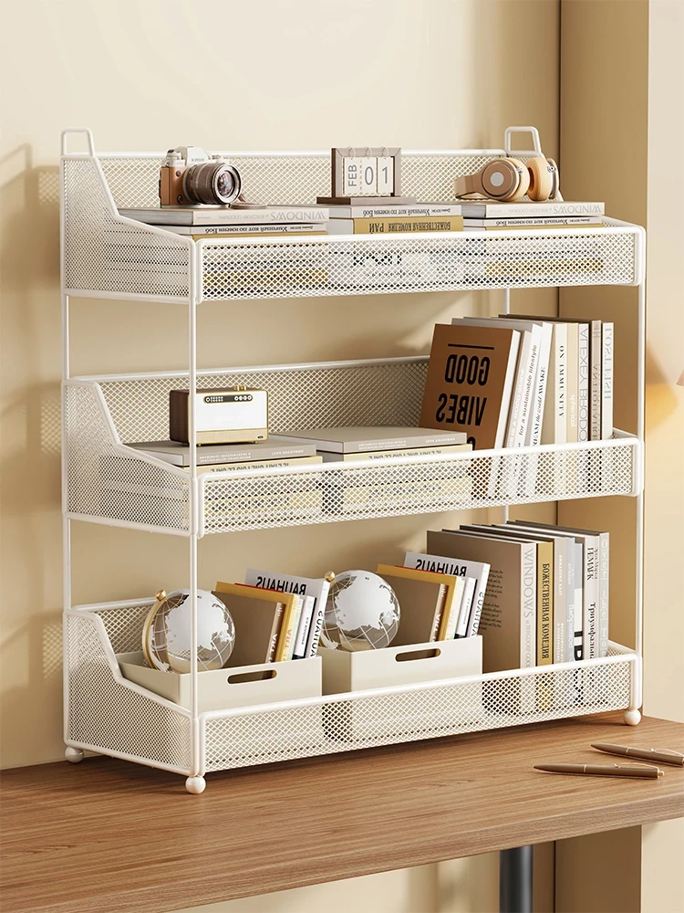 シンプルな鉄製オフィスデスク収納ラック|学生の資料や試験用紙を整理するための便利な本棚|すっきりとしたデザインでデスク周りを整頓!