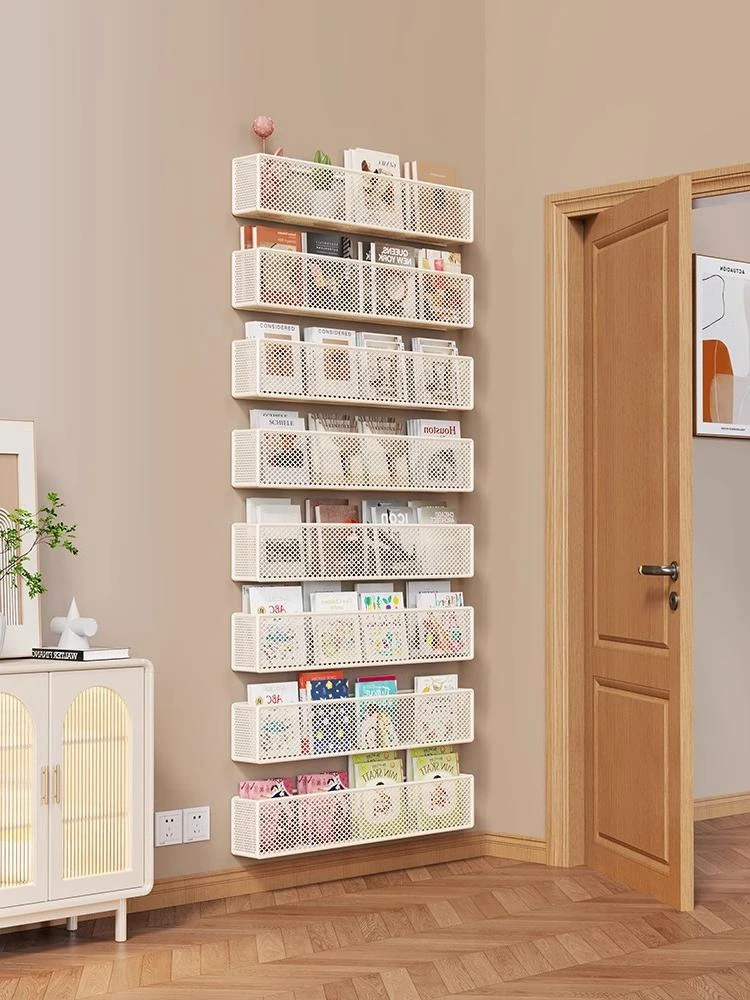 穴あけ不要!壁掛け絵本棚 - 子供の本をおしゃれに展示できる便利な収納スペース。廊下やドアの後ろに最適で、限られたスペースを有効活用。お部屋をスッキリ整頓しましょう!