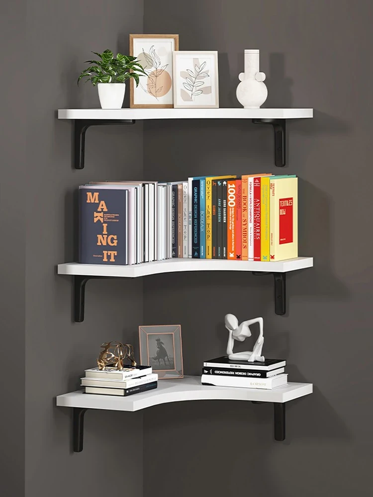 角にぴったり!壁掛け三角形シェルフ - スペースを有効活用するおしゃれな収納棚。簡単取り付けで、あなたの部屋をスッキリと整理整頓!