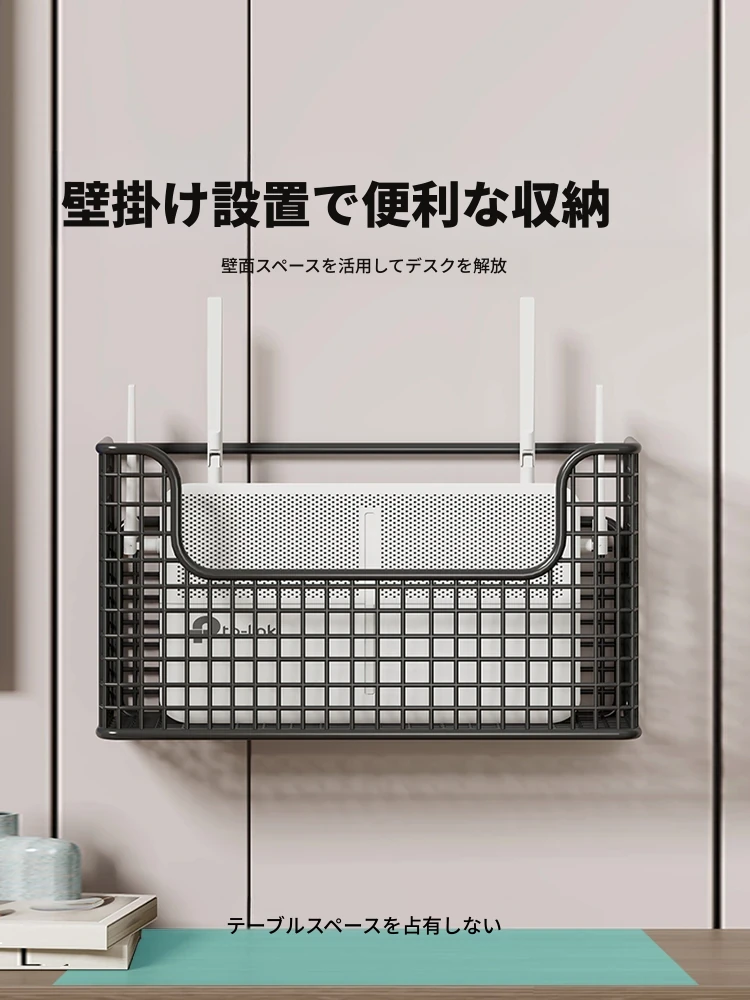 Wi-Fiルーター収納ボックス 壁掛け式デザイン!穴を開けずに簡単設置!おしゃれな収納で、機器を整頓してスッキリ。快適なネット環境を実現する必須アイテム!