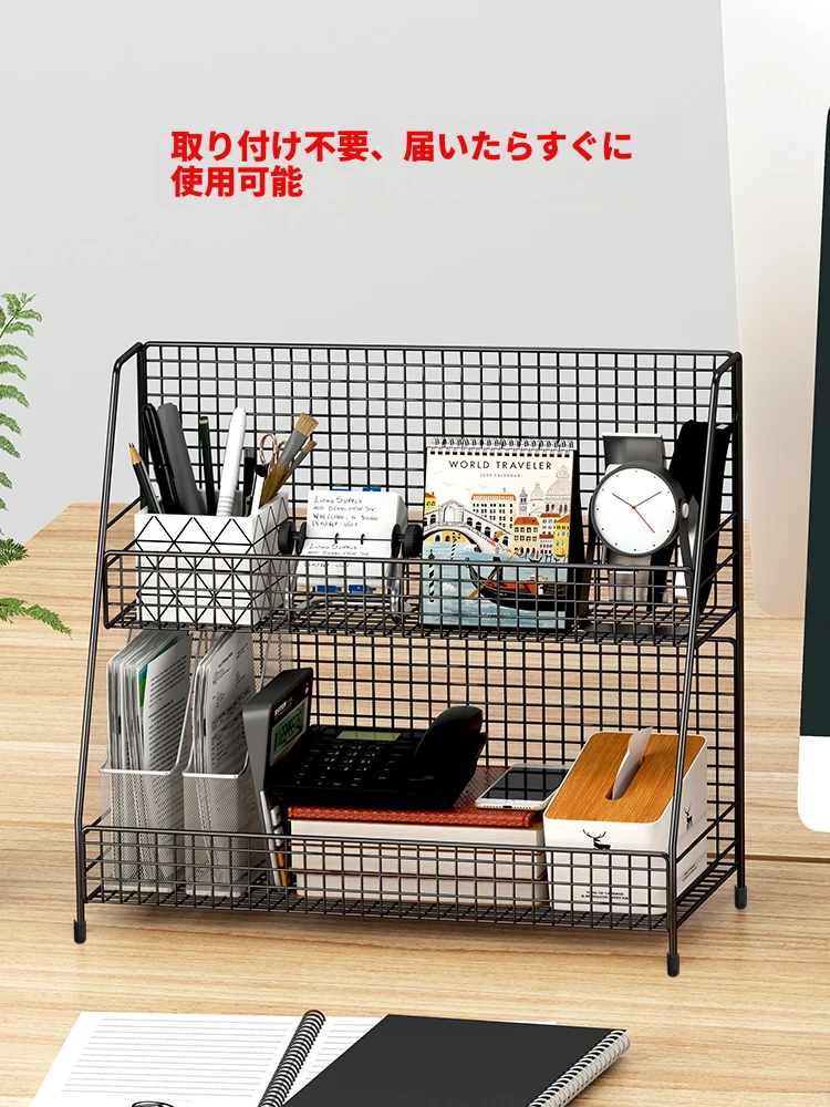 オフィスデスク用収納ラック - 書類整理に最適な2段多層アイアンシェルフ!デスク上をスッキリ整理整頓し、効率的な作業環境を実現!