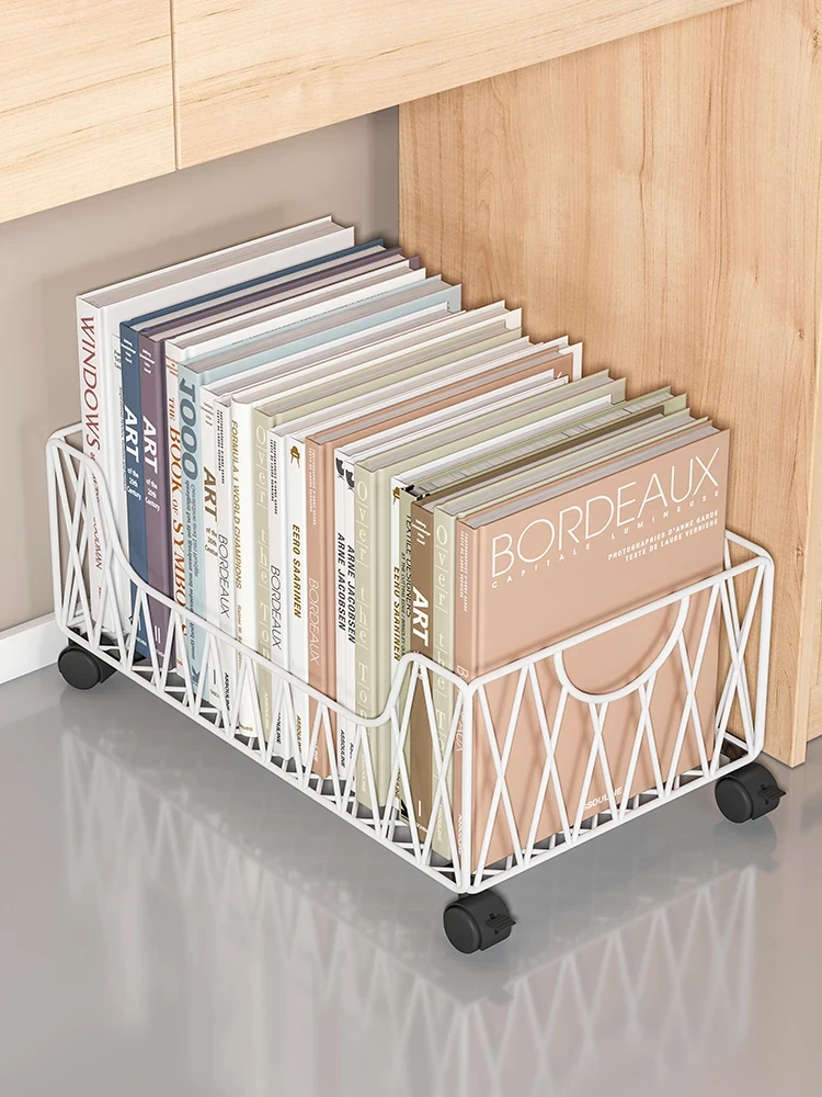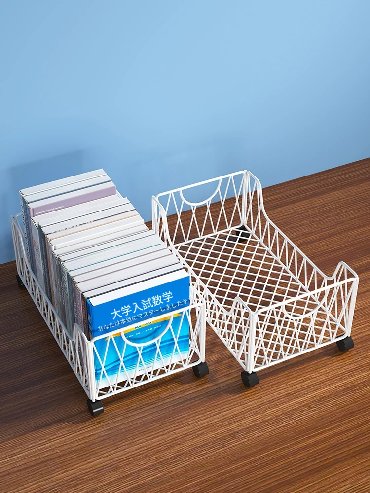 移動式デスクサイド収納ラック|学生や家庭にぴったりなシンプルなフロア収納書棚|小型キャスター付きで使い勝手抜群!書籍や文房具をすっきり整理整頓。あなたの作業スペースをもっと快適に!