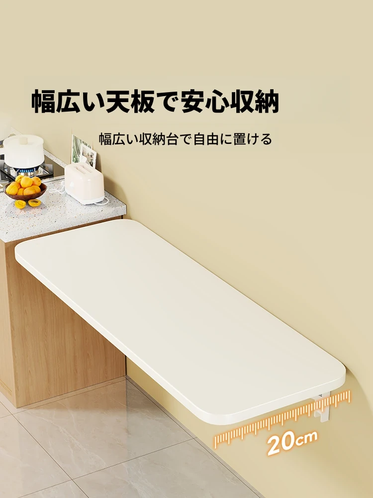 壁掛け折りたたみ収納ラック - キッチンに最適!穴を開けずに簡単取り付け、スペースを有効活用できる一字型シェルフ。調理台としても便利で、おしゃれな収納を実現!
