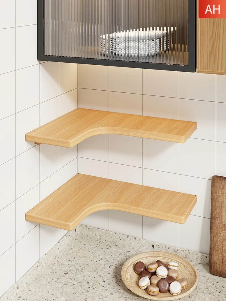 天然木製のキッチンコーナー収納ラック - 多機能壁掛けスパイスラック、調味料容器の整理整頓に最適!美しいデザインでキッチンをスタイリッシュに演出し、スペースを有効活用。あなたの料理をもっと楽しく!