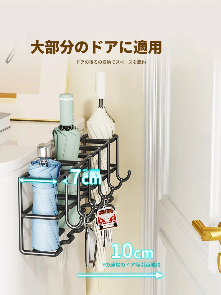 穴あけ不要!傘収納ラック - オフィスや家庭に最適!水切りフック付きで玄関にぴったり!壁掛けでスペースを有効活用できる便利アイテム。傘をスマートに収納し、生活を快適に!