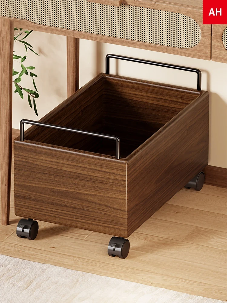 実木製の小型書架 - デスクサイドにぴったり!移動可能な収納カートで、学生の本やバッグをスマートに整理。お部屋をスッキリとおしゃれに!