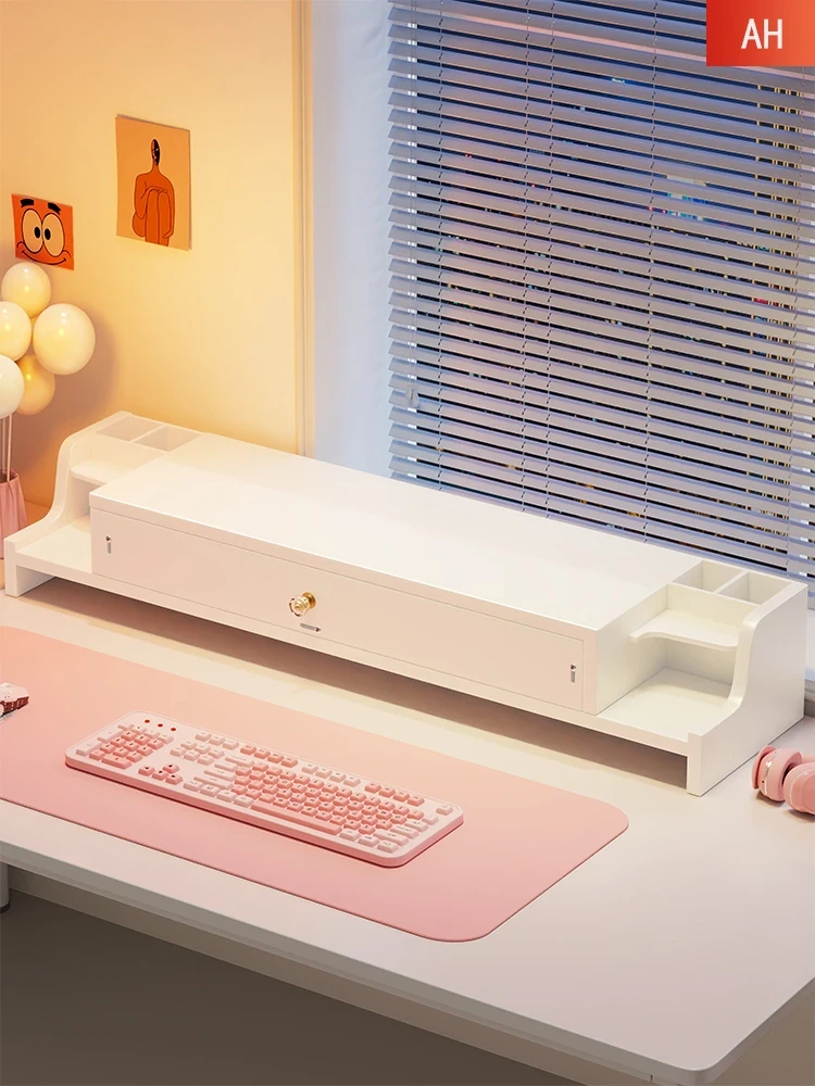 デスクトップモニター昇高スタンド - 女性に最適なオフィス必需品!引き出し付きデスクトップ収納ラックで、作業スペースをスッキリ整理!快適な作業環境を実現します。