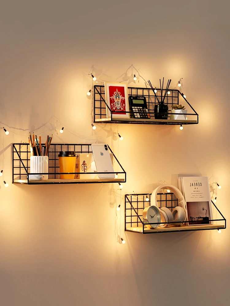 壁掛け投影機スタンド - ベッドサイド用、穴あけ不要の収納ラック!ルーターやセットトップボックスにも最適な壁面収納で、スッキリ整理整頓。お部屋をおしゃれに演出します!