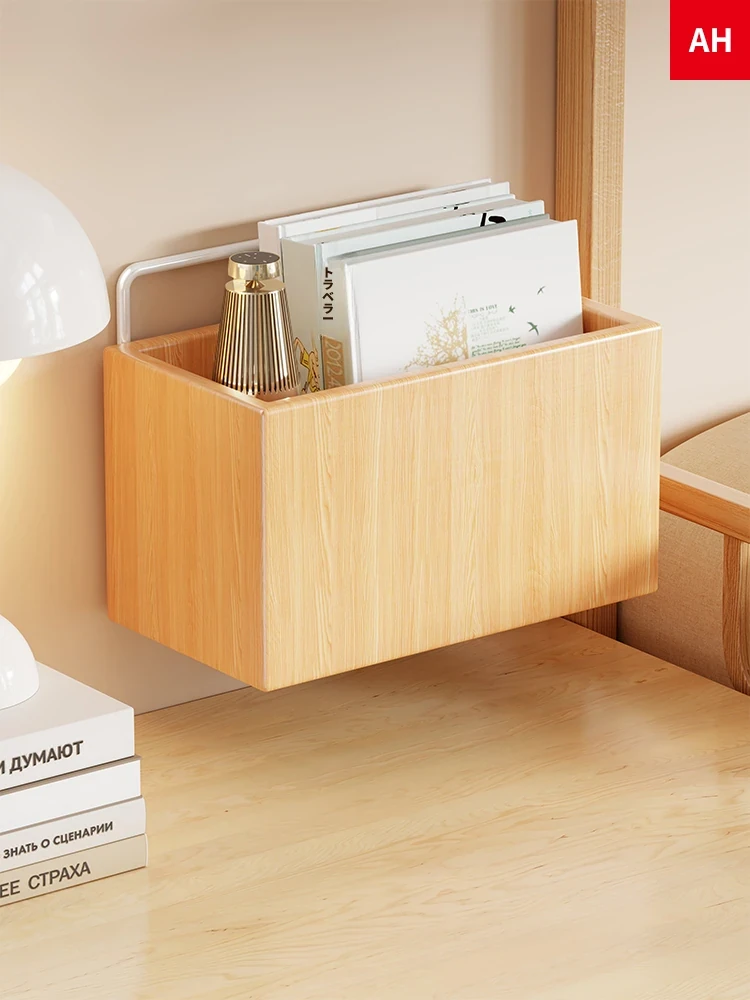 無垢材のベッドサイド収納ラック|大学生必見!穴を開けずに簡単取り付け、上下二段ベッドに最適なスナックバスケット。寮生活をもっと快適に!おしゃれな収納でお部屋もスッキリ。