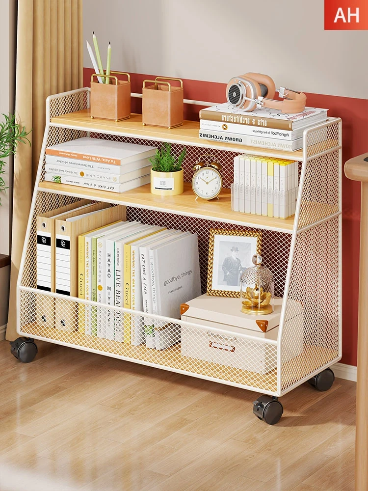 キャスター付き簡易移動式ブックシェルフ - 家庭用・学生・子供向けの多層収納ラック!おしゃれで実用的、部屋の整理整頓に最適!