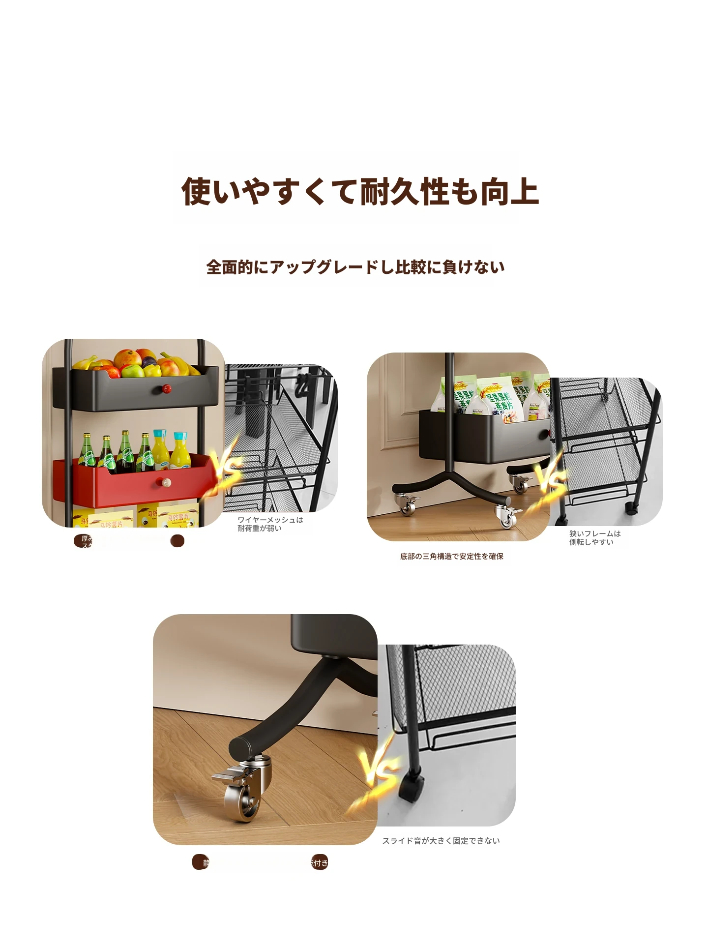 キャスター付き移動式おやつ収納ラック - 家庭用の簡易多層収納カート!スペースを有効活用し、整理整頓をサポートする便利なアイテムです。あなたの生活空間をスタイリッシュに変えましょう!