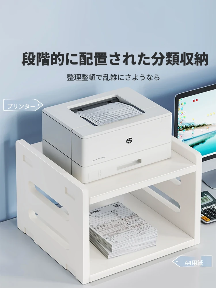 デスクトッププリンター用収納ラック - シンプルでスタイリッシュな2段式、資料やコピー機を整理する必須アイテム!オフィスをすっきり整頓し、作業効率をアップさせる完璧なアイテムです!