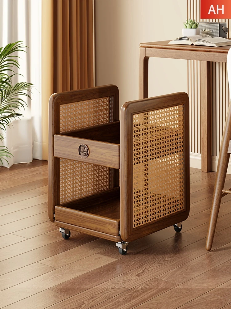 実木製の書籍収納ラック - 学生向け移動式ブックシェルフ、デスク下にぴったり!キャスター付きで簡単移動、効率的な収納を実現。おしゃれで機能的な収納ソリューションをご家庭やオフィスに!