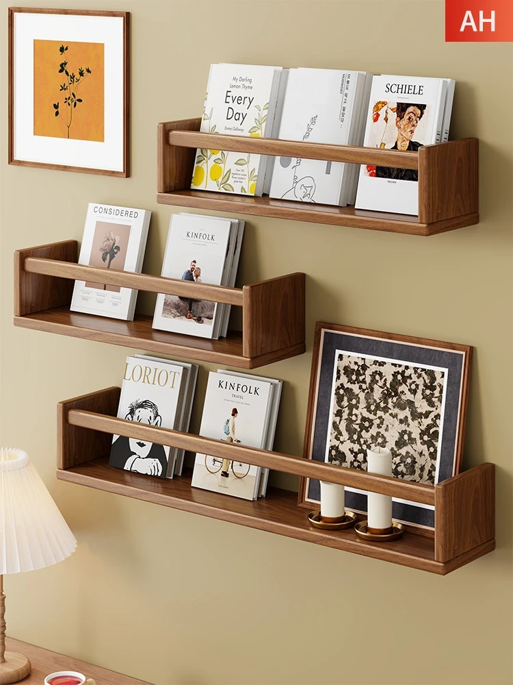 高品質な無垢材使用!おしゃれな壁掛け収納ラック - リビングに最適な本・新聞・雑誌・調味料をスッキリ整理!シンプルでスタイリッシュなデザインで、インテリアにもぴったり!