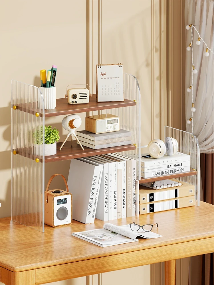 デスク上の収納をスマートに!多層伸縮式デスクラック - シンプルで使いやすい家庭用書棚。オフィスや勉強部屋に最適な小型収納キャビネット!
