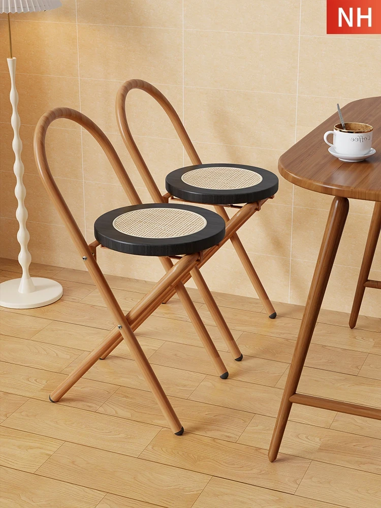 家庭用折りたたみ椅子 - シンプルなデザインの背もたれ付き、バー台や書斎にも最適!厚手のクッションで快適さを追求。リビングやアウトドアにもぴったりなポータブルな大人用折りたたみスツール!